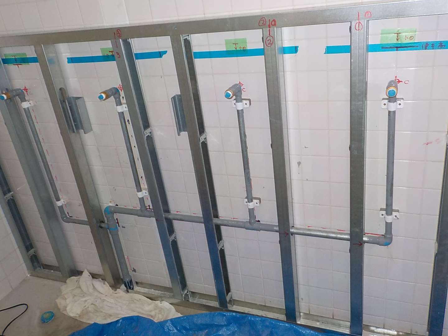 ビル 改修工事 千葉市 男子トイレ小便器増設工事 お客様から男子トイレの小便器の数を増やしたいとの相談があり、隣接の女子トイレを改修して、そこに小便器を設置する提案をしました。それに伴い、既存男子トイレには洋便器を増設し、女子トイレには小便器のみ設置しました。 竣工日 2025/4/1~2025/4/25 場所 千葉県千葉市中央区 施工内容 小便器増設工事 1 / 1 次の施工事例 公共施設 千葉市 蒸気配管改修工事