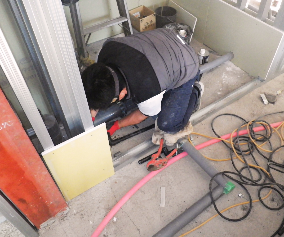 水道メーターから水回り設備に配管を延ばし、接続する工事です。新築物件において、キッチン・浴室・トイレなどを使えるようにするために行われます。また、リフォーム工事でキッチンやトイレの場所を変更したり、水回り設備を追加したりする場合にも必要です。